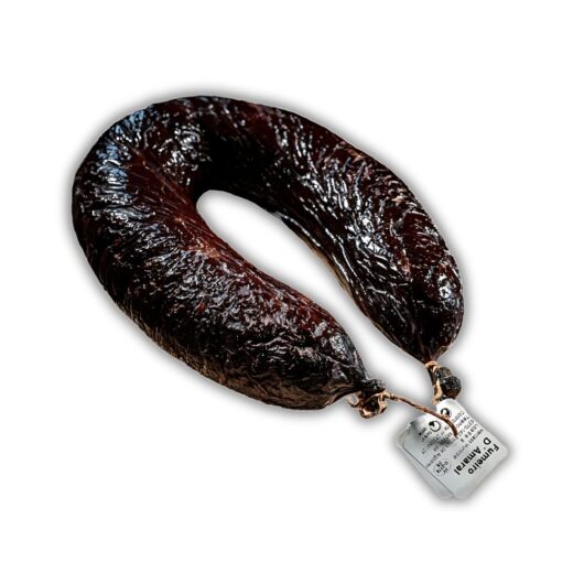 Morcela Artesanal, feito à base de pão de trigo, sangue de porco, cebola, azeite, cominhos, etc…